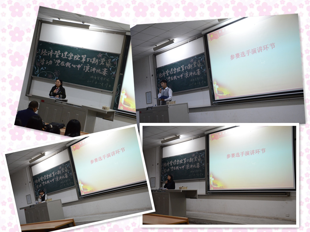 晚上七时,即使天气渐寒,但仍掩不住教室里的激情飞扬。活动伊始,主持人高甜致开场白,欢迎了到场的老师和同学,随后介绍了本次演讲比赛的流程,评分标准并进行分组。十名选手被分为两组,一组五人。随着主持开场白结束,上半场比赛拉开帷幕。选手们慷慨激昂,从中国共产党的建党谈到当今中国杰出领袖,彰显自己的风采。之后,进入中场休息,党课学员代表进行大合唱。他们着装统一,歌声洪亮,以一曲《强军战歌》唱出了他们对党的忠诚与热爱。随后,经过下半场激烈的角逐,最终产生获奖者。其中王戈获得一等奖,黄艺璇和陈敏获得二等奖,张小妍,赵紫芮和王耀挺获得三等奖,各位老师分别为获奖者颁奖并合影留念。最后,邵欣老师发表讲话。讲话中,她对本次活动进行了点评,表达了对同学们积极参与活动的感谢以及对参赛同学们精彩演讲的鼓励,最后她表明了对以后活动的期待,他希望同学们能够再接再厉,取得更好的成绩。