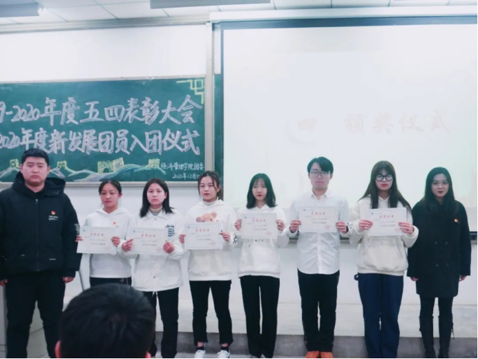 12月10日晚,银河yh8858com在教1-104召开2019-2020年度五四表彰大会暨新发展团员入团仪式,出席本次的嘉宾有团委书记许金鑫。会议由组织部温迪主持。